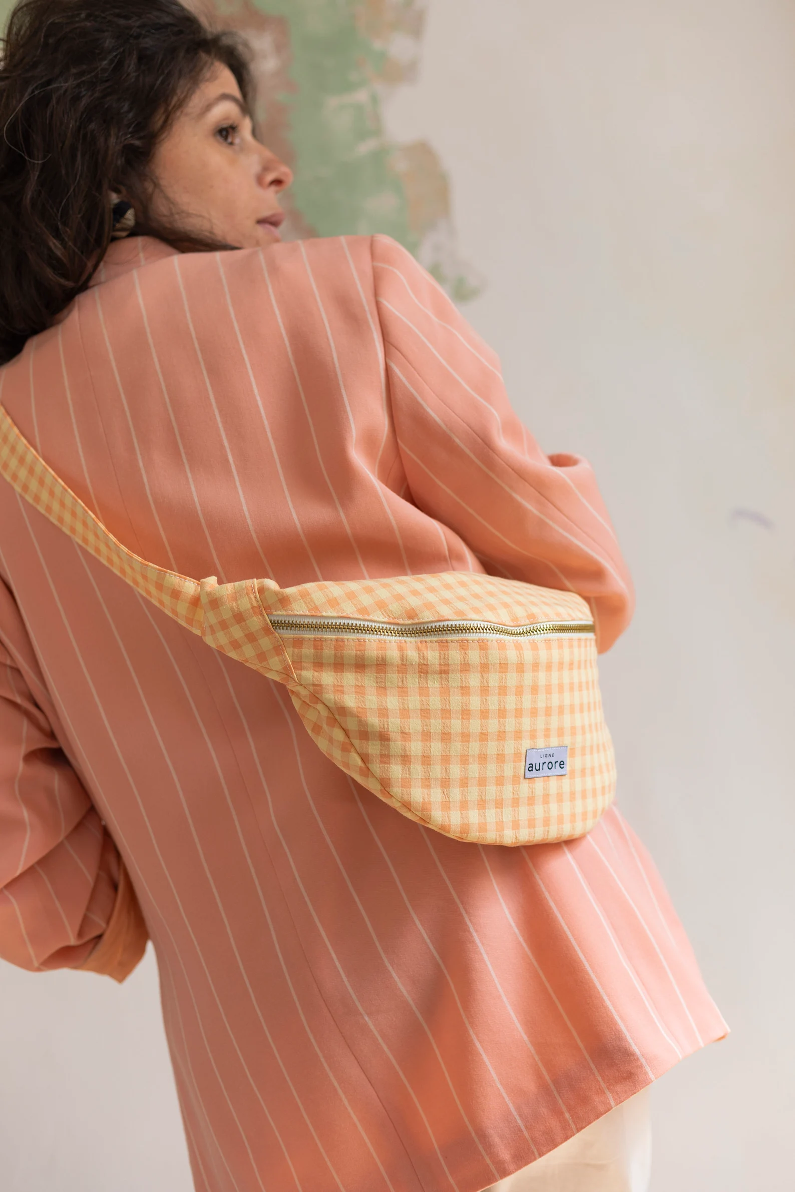 Ligne Aurore is developing an upcycling fabric range. The Nina fanny pack, timeless and easy to wear, adapts to your daily life.