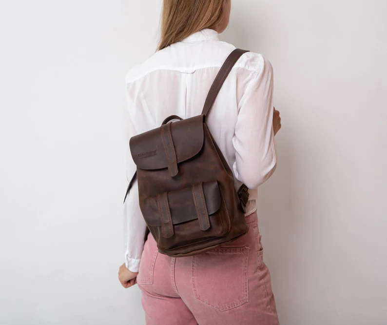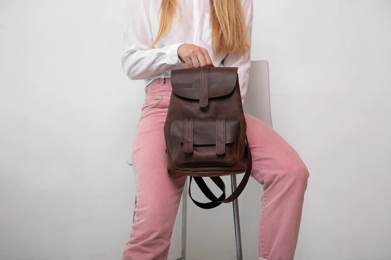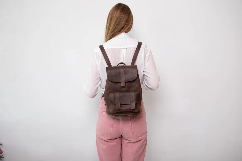 Brown Women Leather Backpack,School rucksack,Satchel Leather