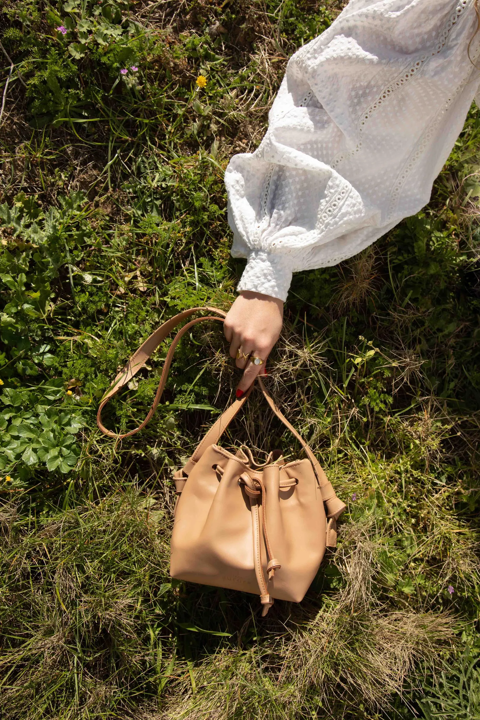 Pretty leather bucket bag with a clean, chic and minimalist style. Simple to handle with a certain lightness, allowing it to be worn on any occasion and at any time of the day!