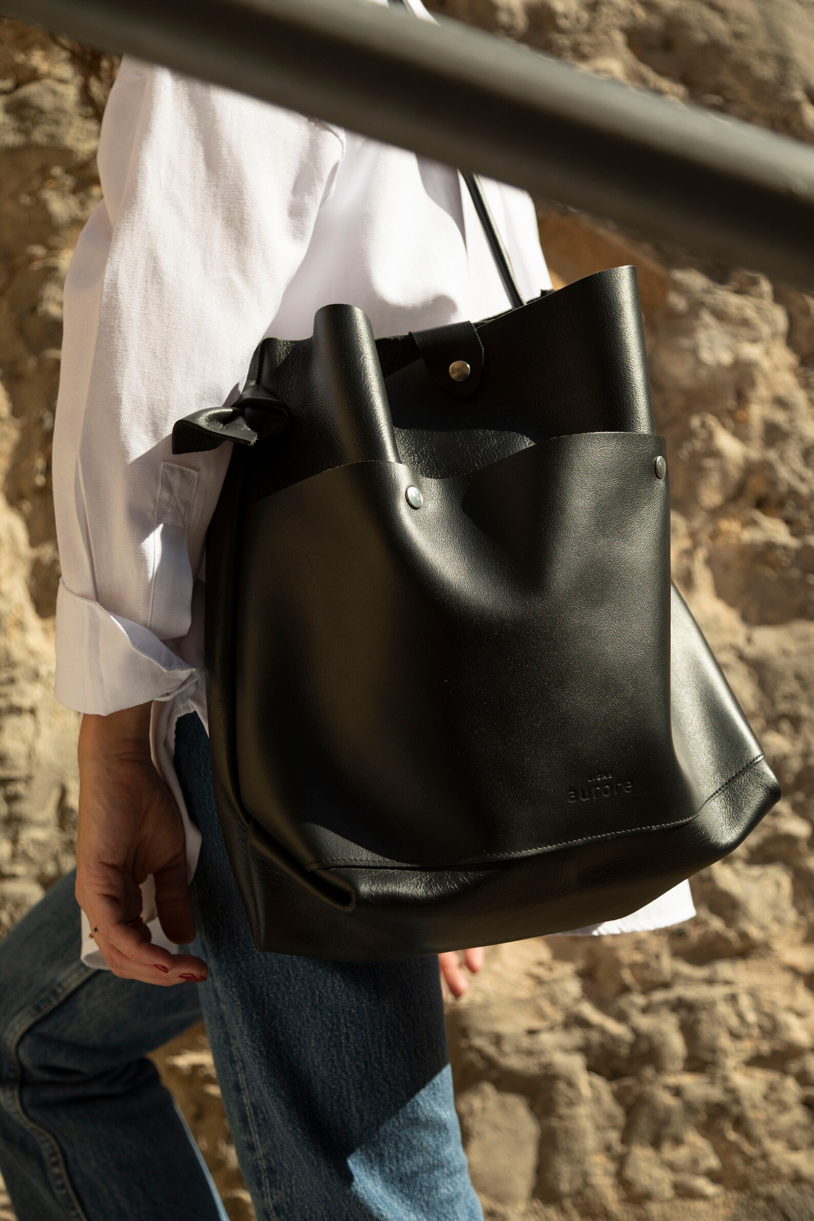 Leather handbag with a refined style, chic and minimalist style. The medium Bonnie is deeper than the classic Bonnie. Simple handling with a certain lightness, allowing to be worn on any occasion and at any time of the day !