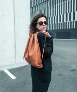 Italian calf leather – Fawn color – leather raw Inside – Small inside pocket – adjustable Handle – engraved logo