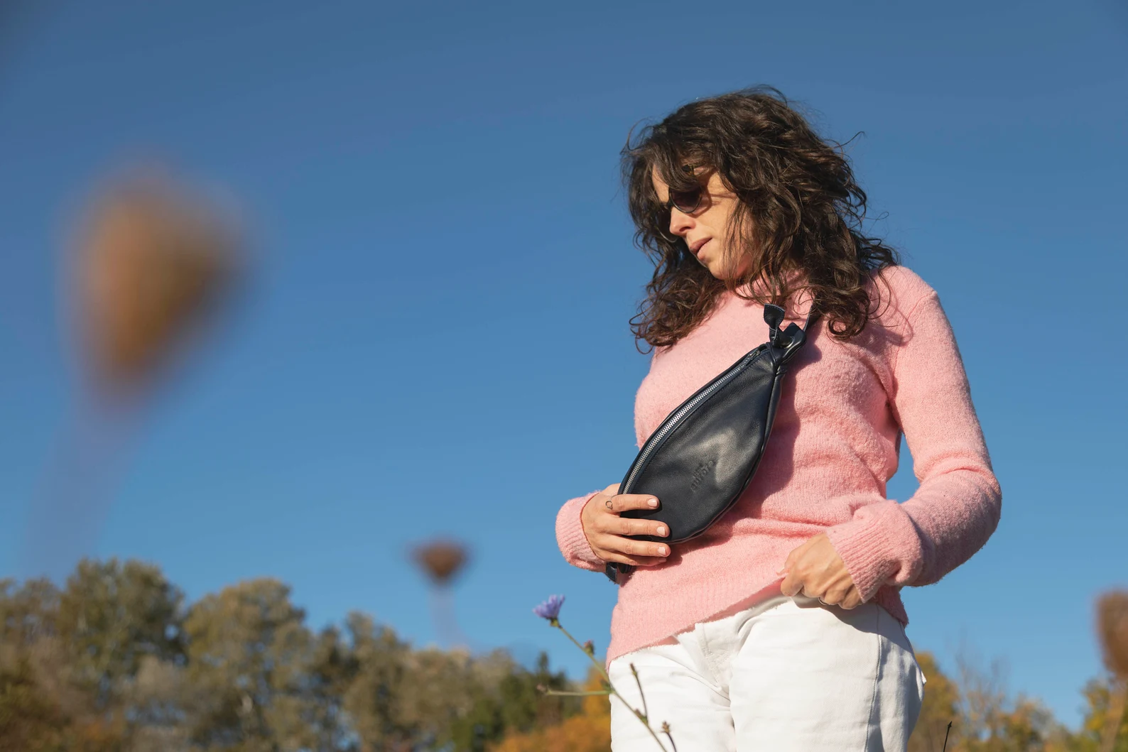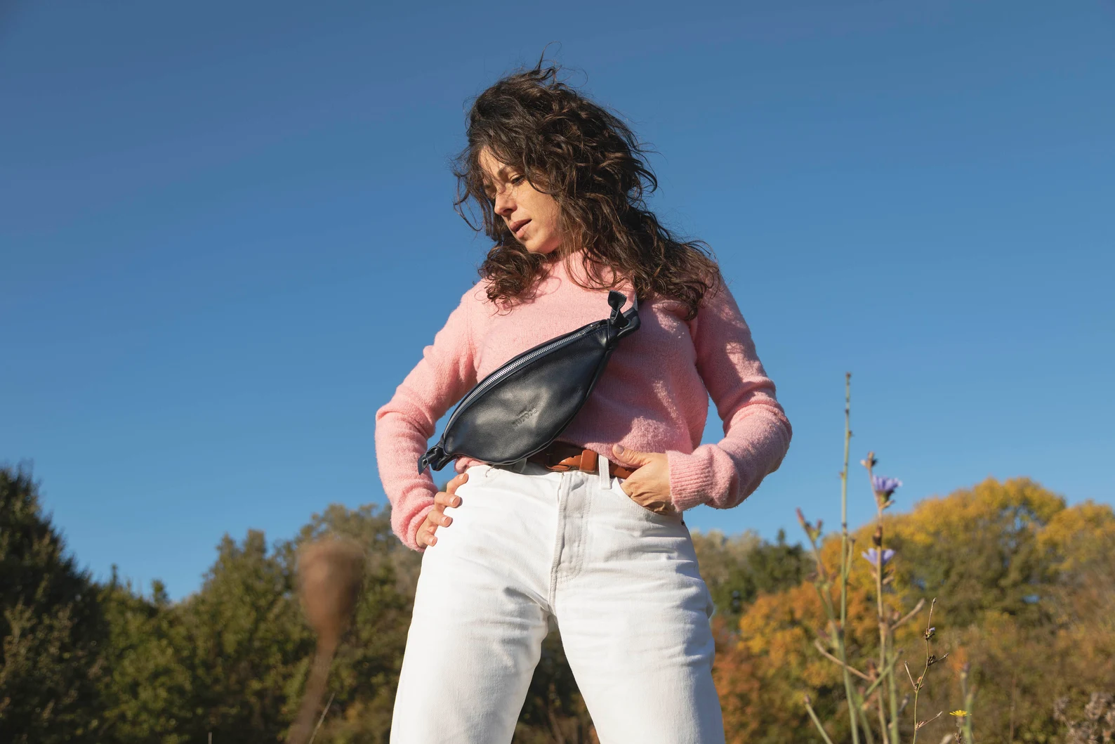 Leather belt bag for women