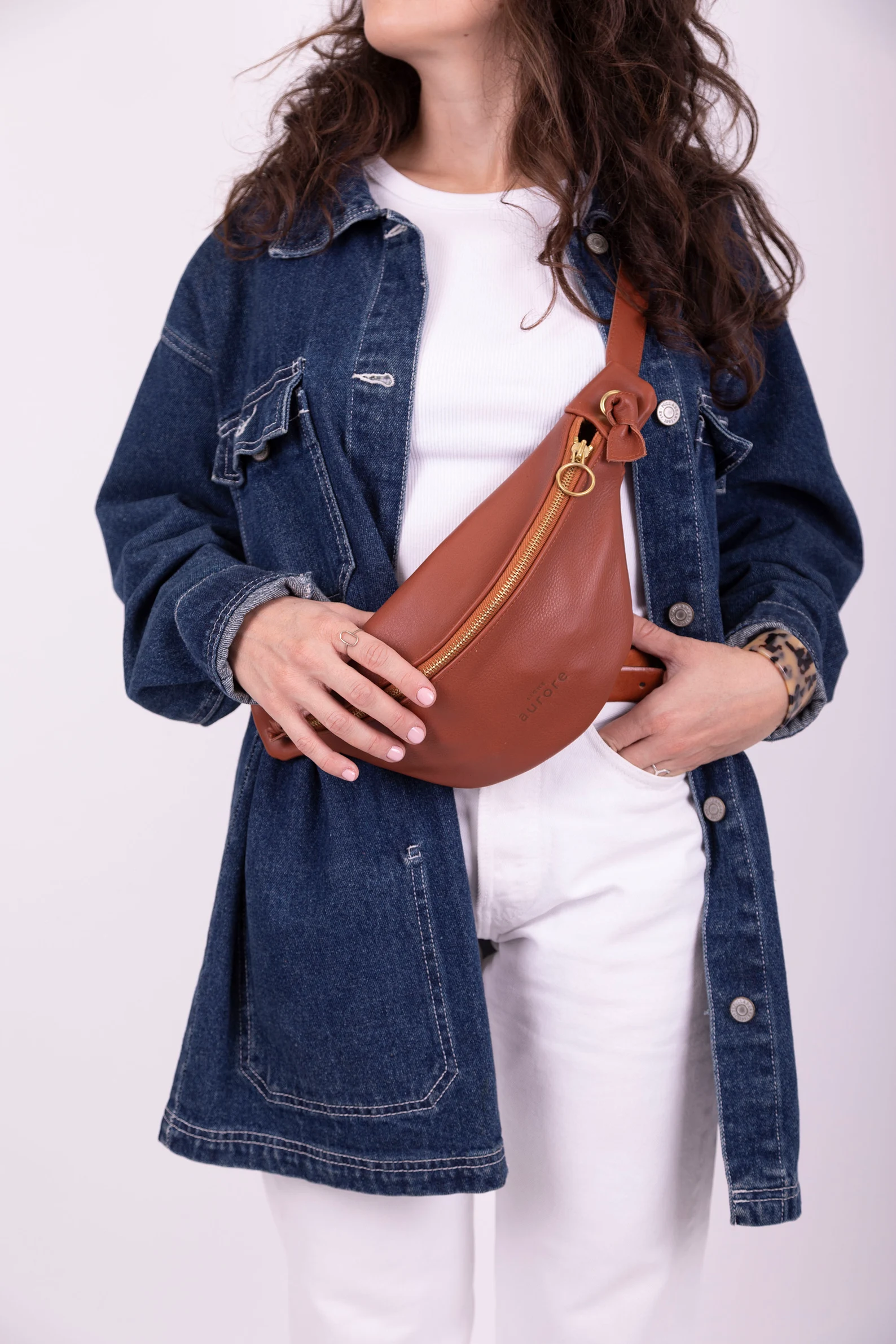 Leather belt bag for women