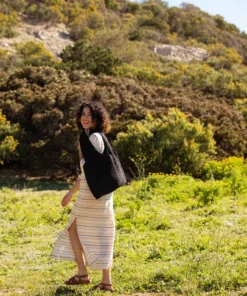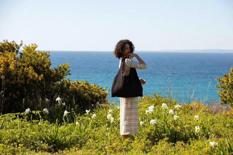 The Marthe tote bag with an upcycled feel. Easy to carry, it’s lightweight, practical, and chic. Each model is unique, or available in mini editions.