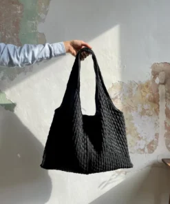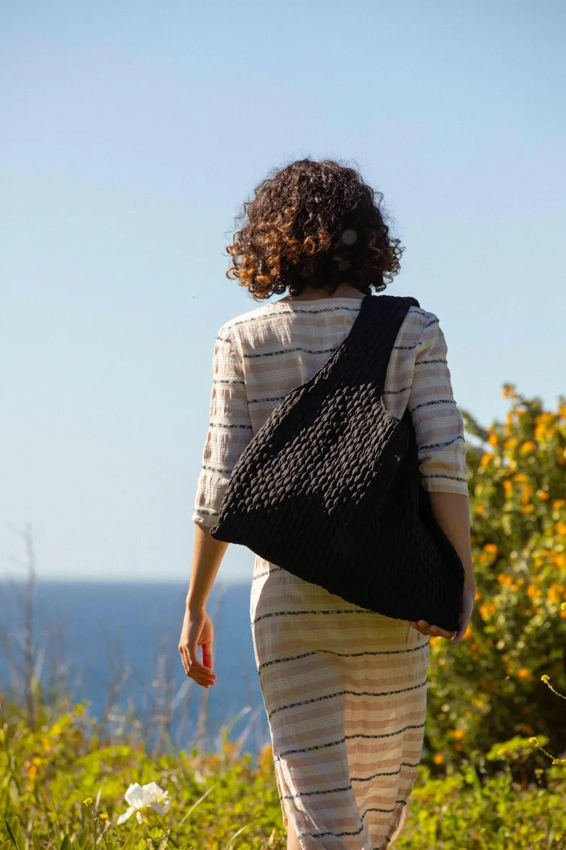 Marthe tote bag – black smocked fabric