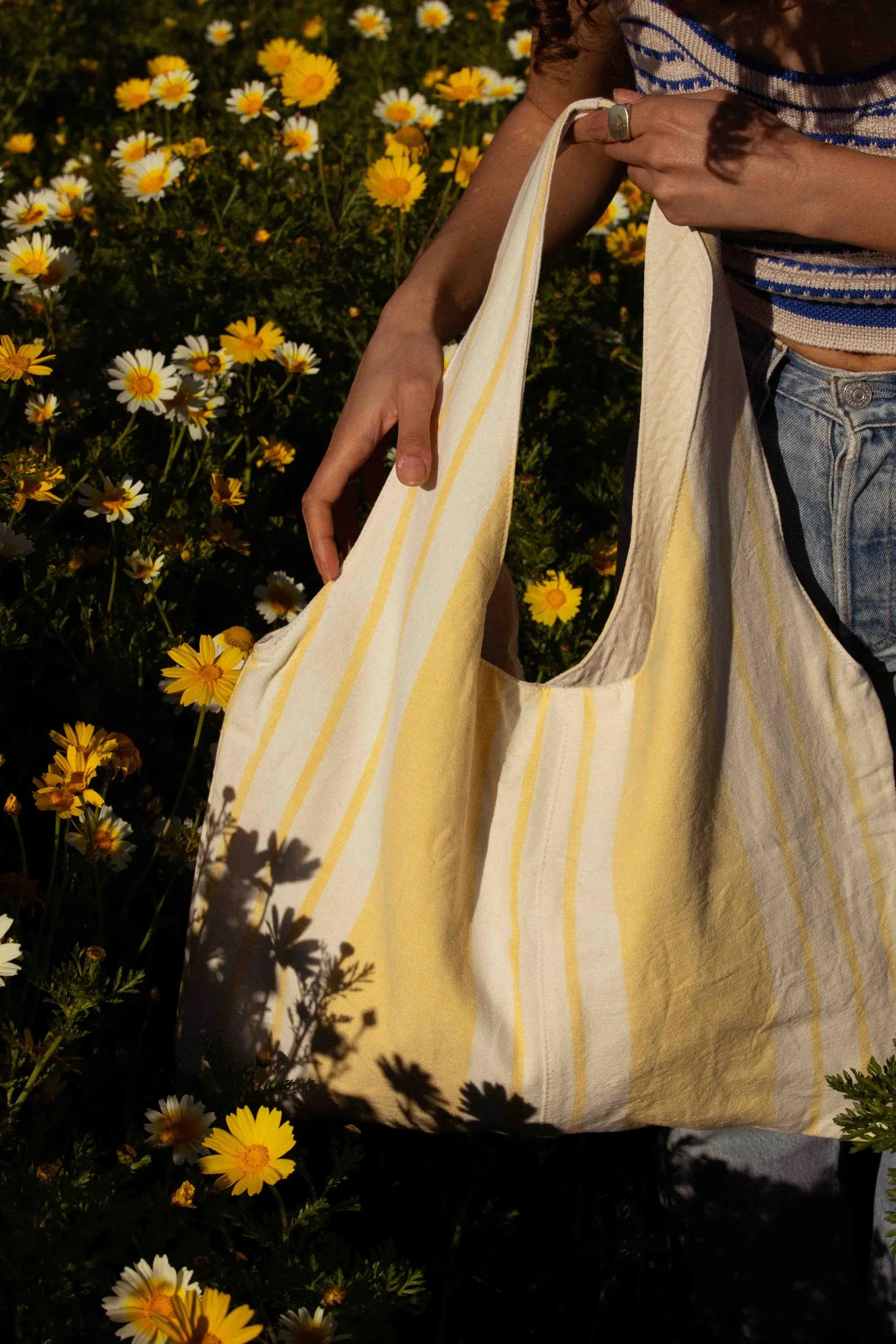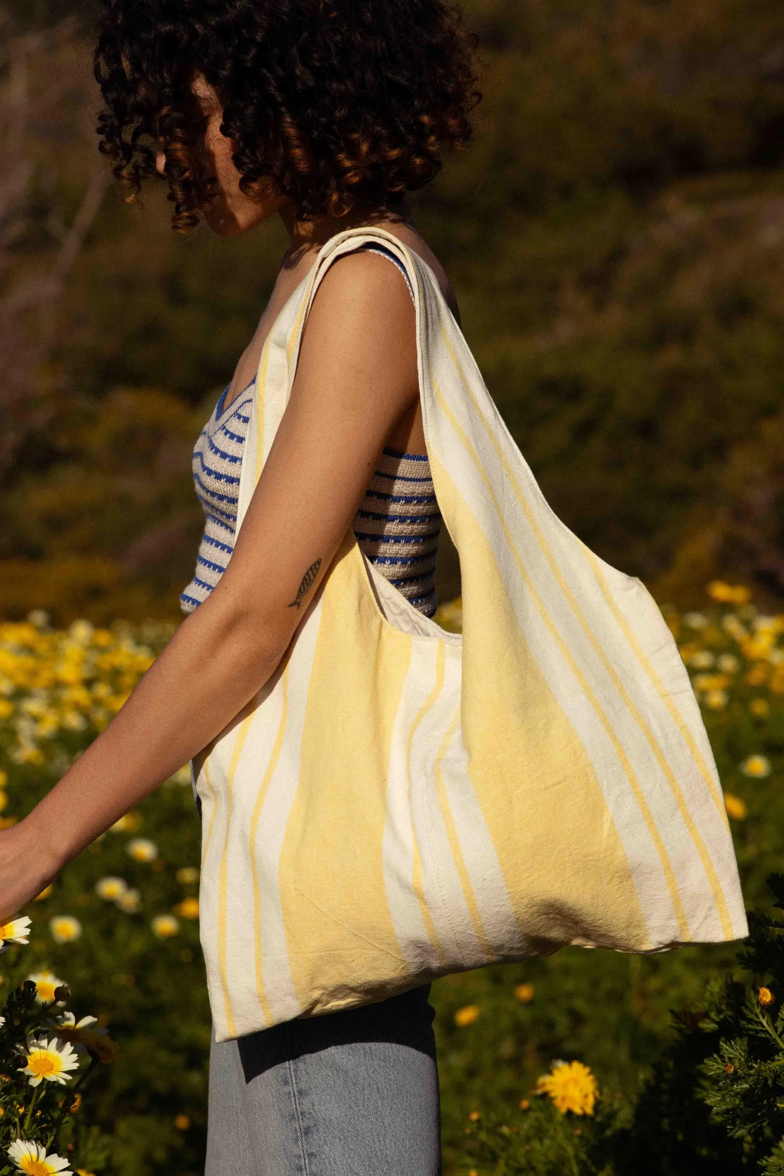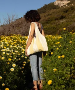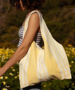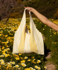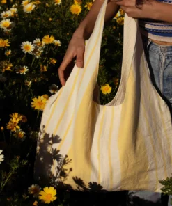 Marthe tote bag – vintage fabric with pale yellow stripes