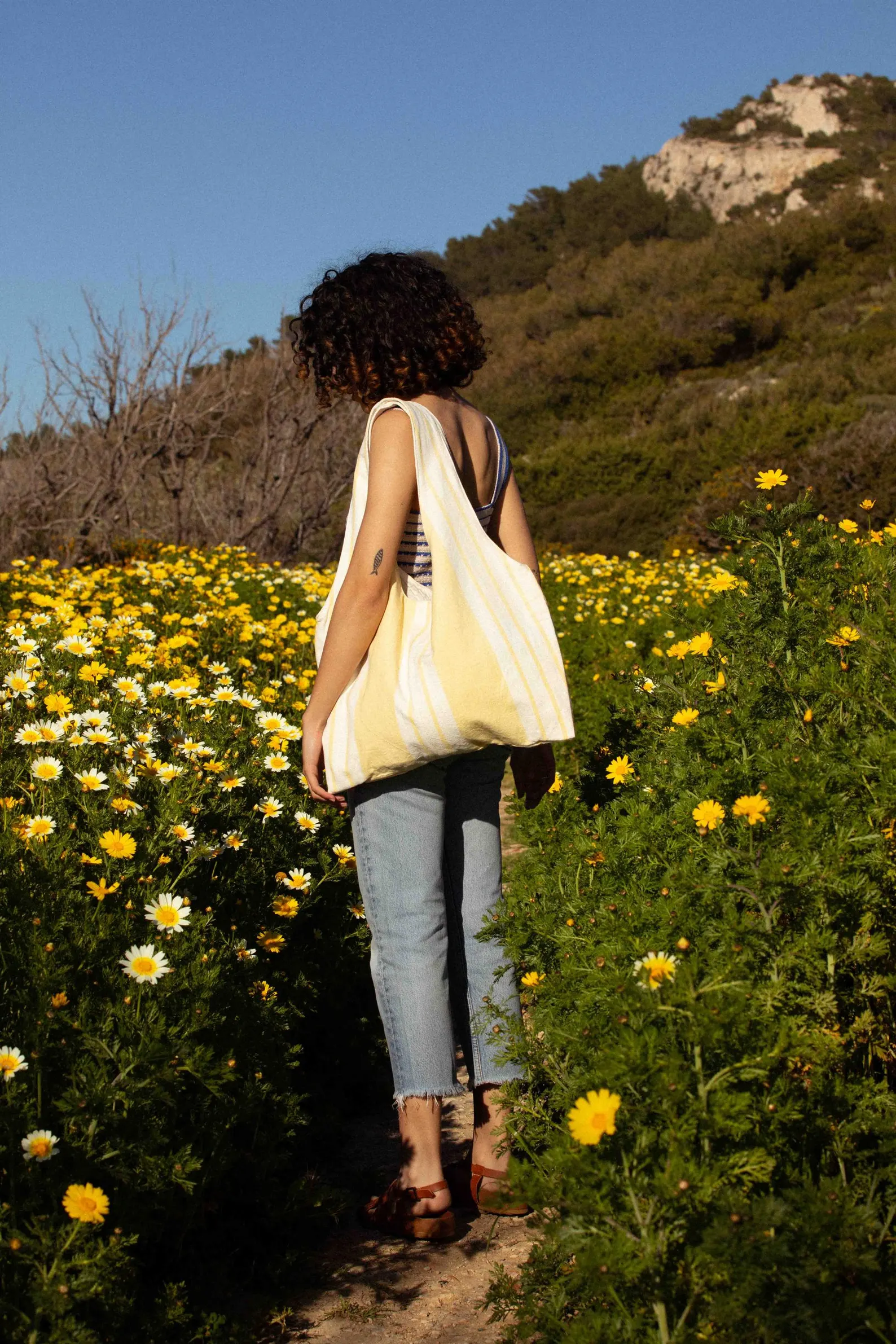 The Marthe tote bag with an upcycled feel. Easy to carry, it’s lightweight, practical, and chic. Each model is unique, or available in mini editions.