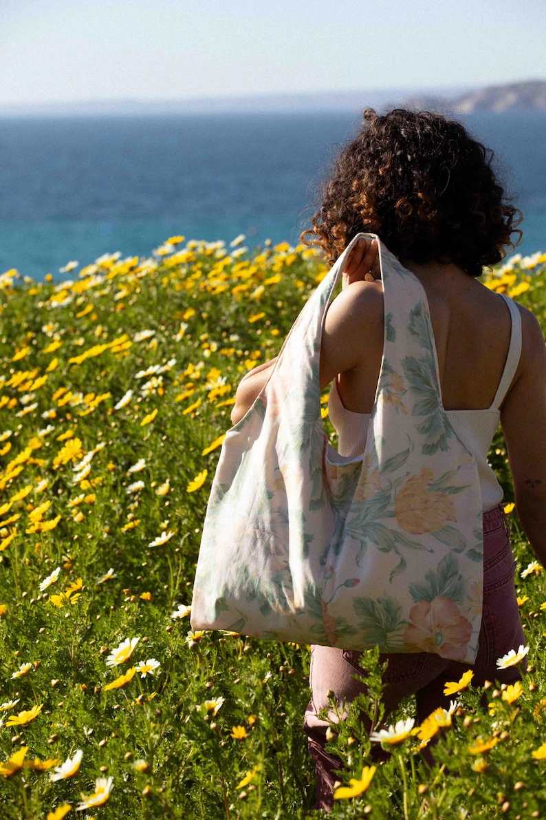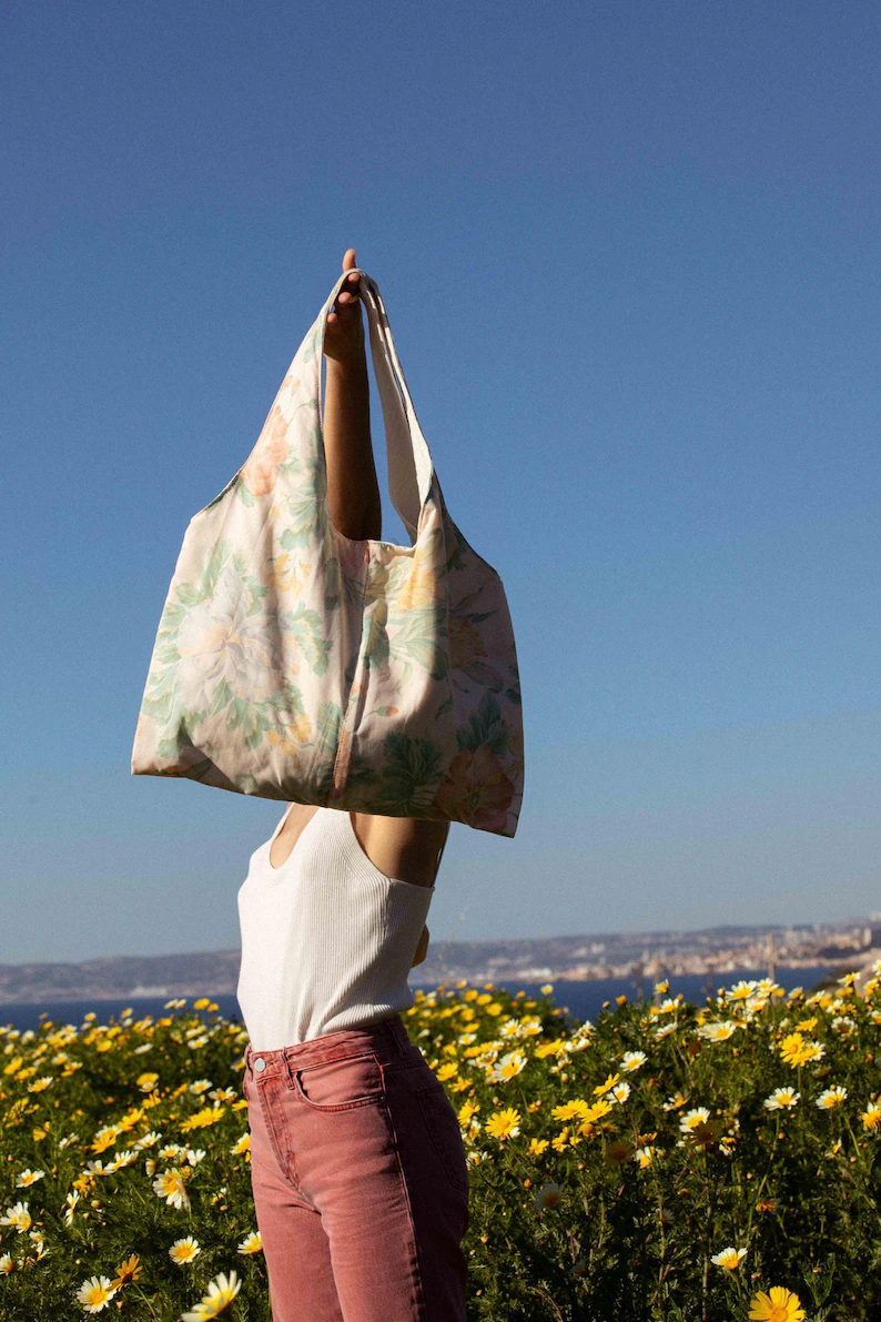The Marthe tote bag with an upcycled feel. Easy to carry, it’s lightweight, practical, and chic. Each model is unique, or available in mini editions.