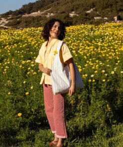 Marthe tote bag – vintage navy blue striped fabric