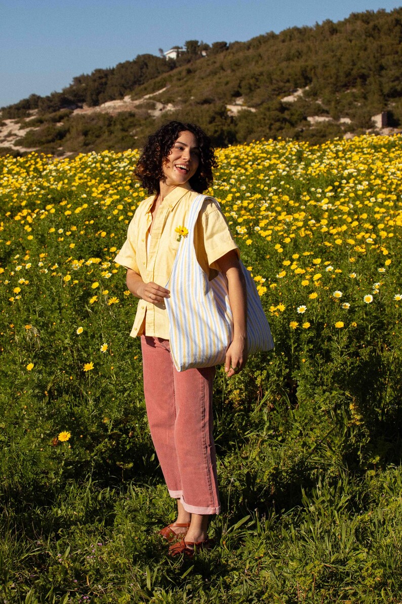 The Marthe tote bag with an upcycled feel. Easy to carry, it’s lightweight, practical, and chic. Each model is unique, or available in mini editions.