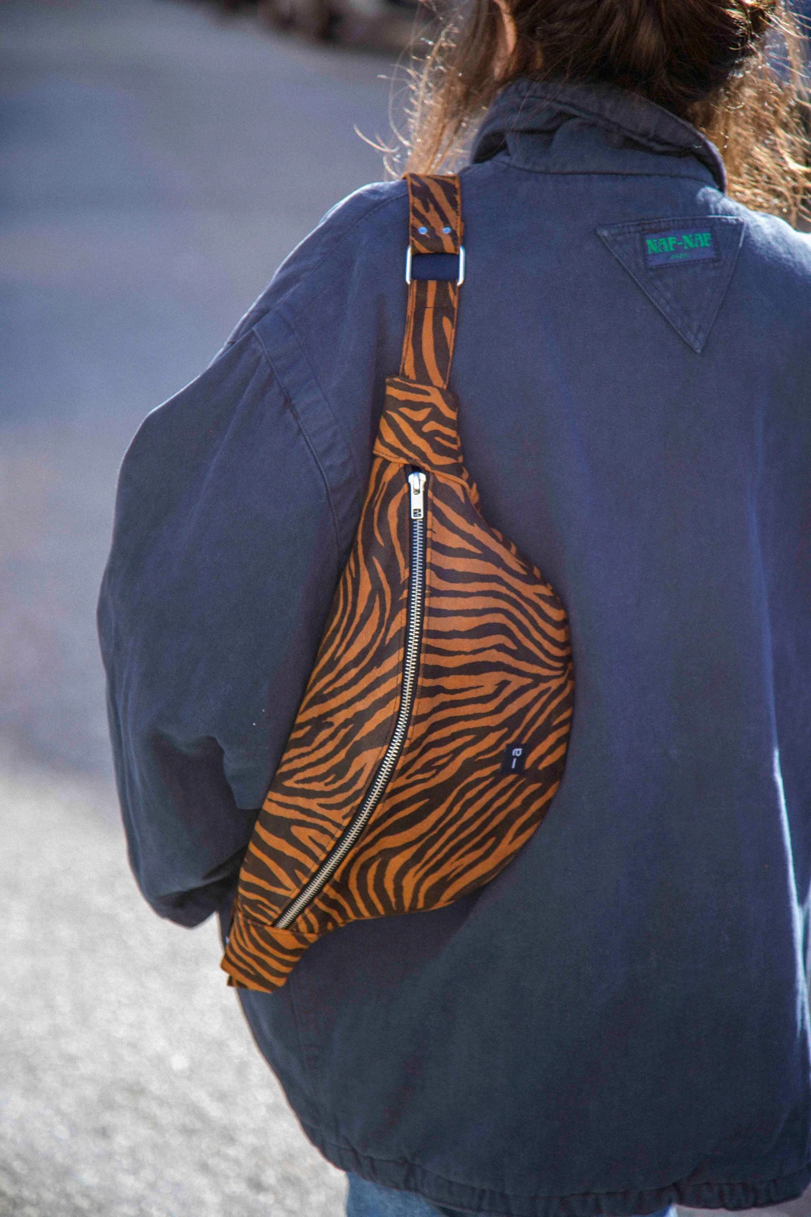 Nina Belt Bag in Grain Suede Calfskin – Brown Zebra