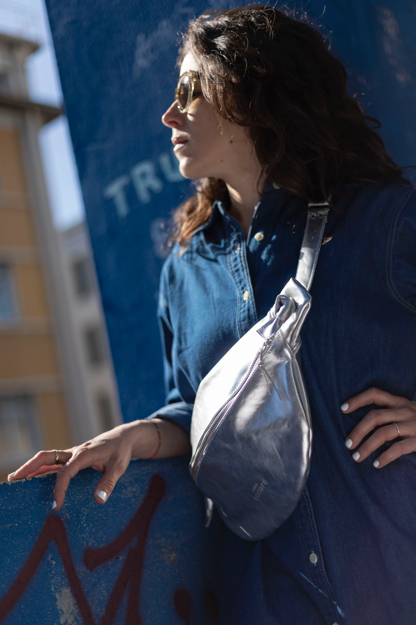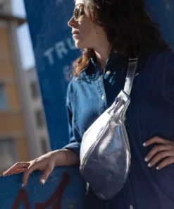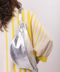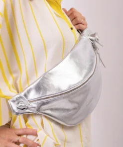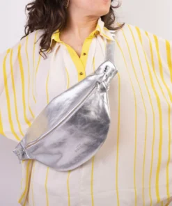 XL fanny pack, chest bag – Silver-colored cowhide leather